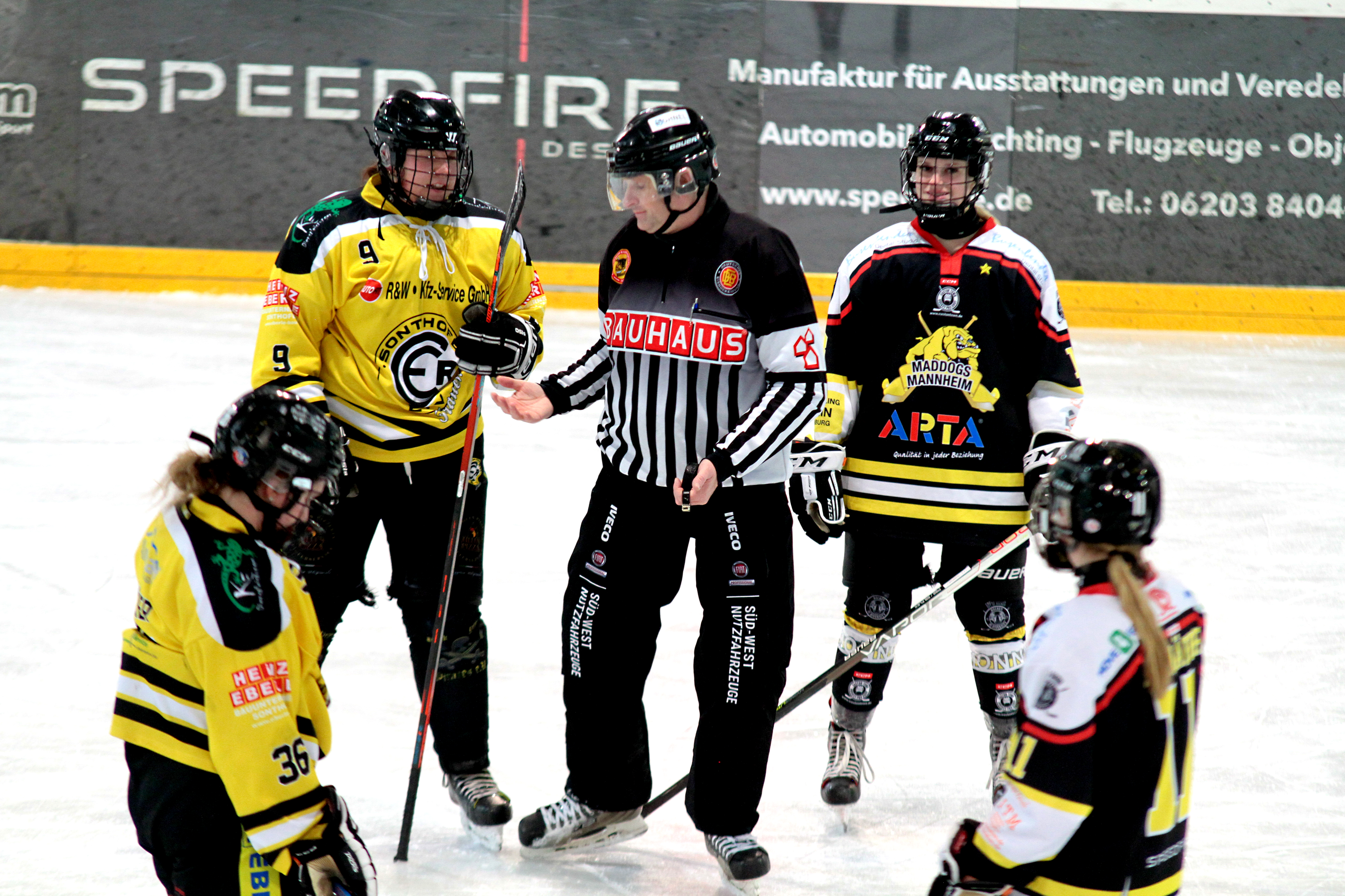 Zu Gast in Mannheim ist Sonthofen. Hatten sich unsere Mädels vor Wochenfrist noch schwergetan so ergab sich heuer ein völlig anderes Bild. Sonthofen mit einem dünnerem Kader , dafür Mannheim nun wieder fast komplett. Start. Monnem wieder gewohnt offensiv jedoch mit zu vielen unnötigen Strafzeiten. Pausenstand 2:0